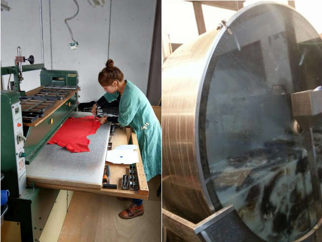 Saguaでは環境に無害のポルティラ製法で皮から革へ鞣し、クチナシ、ラック、ヤマモモ、クマササなどの天然染料を使用し、Saguaオリジナルカラーへと染色します。やわらかく、ふわふわしたちょうちょの羽と、キラリと光るワイヤーは真鍮製を使用、触覚にはビーズを使用しています。少しならワイヤーを動かす事が可能です。2枚の鹿革を合わせることで、厚みが増し立体感と存在感を出すことができました。自然界を生きた証、木に体をこすったキズの部分などもそのまま作品にし、ちょうちょの羽の柄になるように型を抜いているものもあります。発がん性物質を含まないアゾフリー染色で、ヒト、動物、地球に無害であることを心掛けた、SDGs(持続可能な開発目標)を考えた鹿革です。