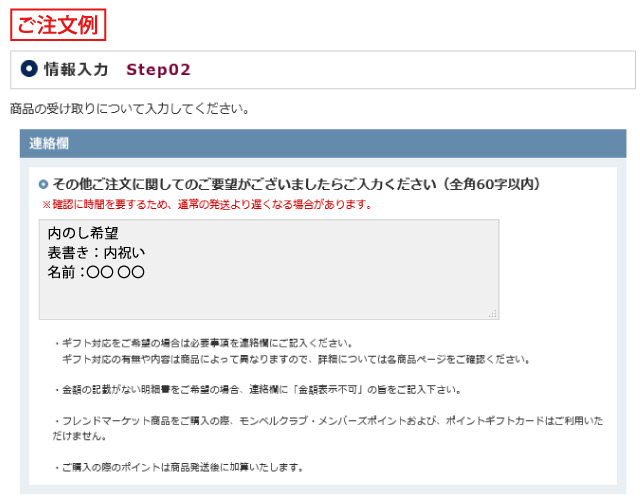 ・内のしをご希望の際は、備考欄に「内のし希望」と記入ください。