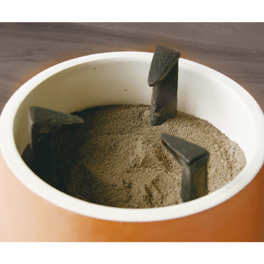 2.五徳の中心部の灰にくぼみをつけ、火を熾した炭を置きます。その際、炭を縦によりかかるようにし、空気の流れを作ります。
