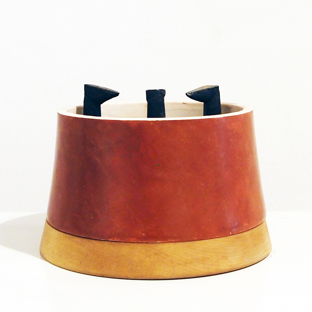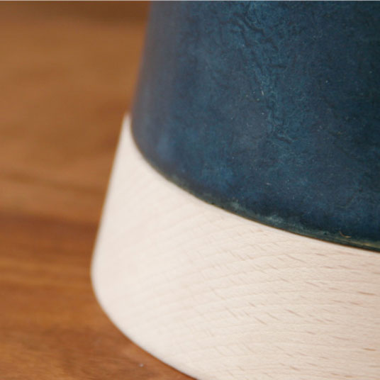 【素材】本体:ねり土、土台:ブナ材(白木:亜麻仁油仕上げ、茶:自然塗料)