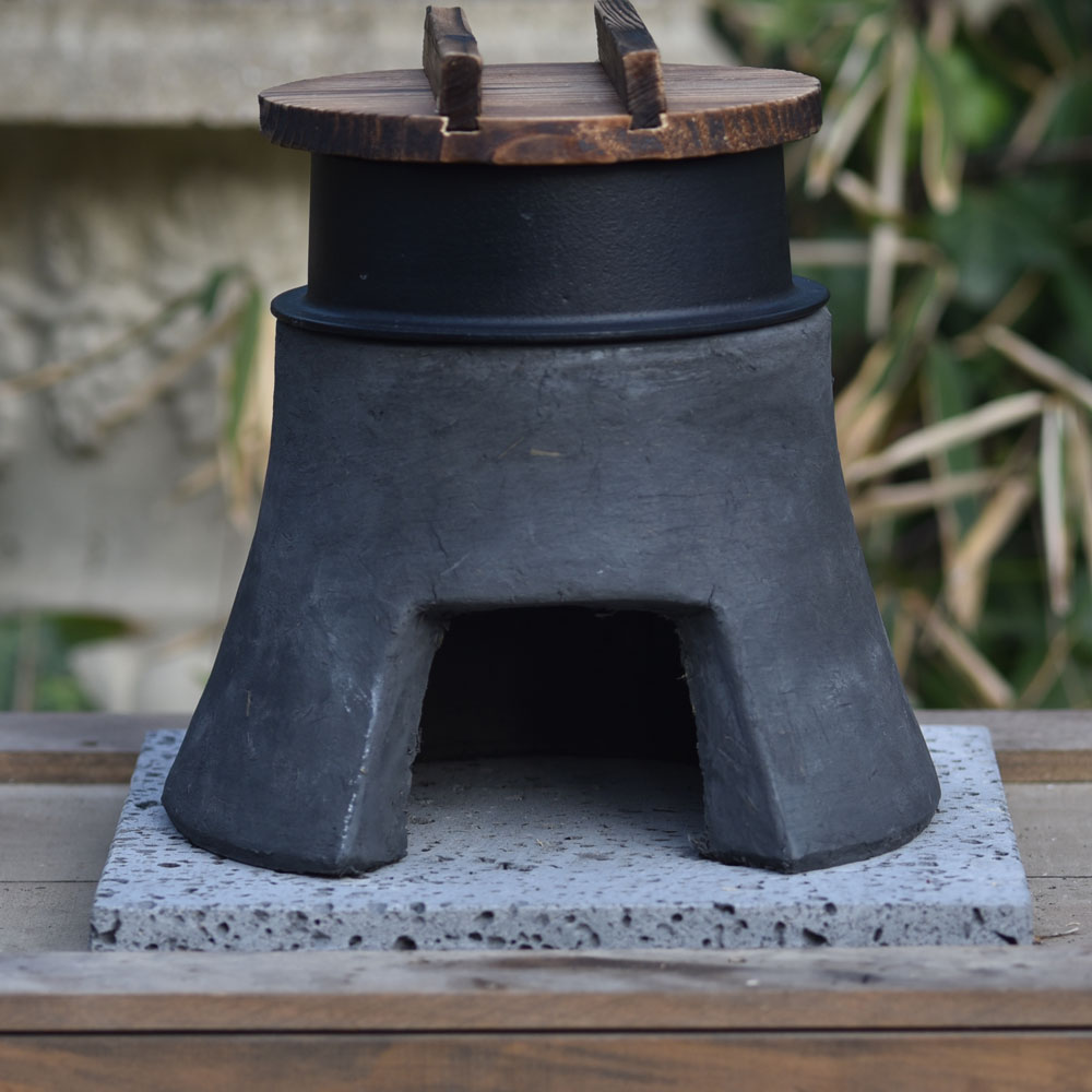 【セット内容】コヘッツイHAJIME…1基、釜(鋳物釜)…1個、木蓋…1個、台座(溶岩プレート)…1枚、固形燃料…3個、固形燃料用トング…1個、高さ調整台…2個、リペア用土壁…1袋、コヘッツイHAJIME明書、注意事項各1枚