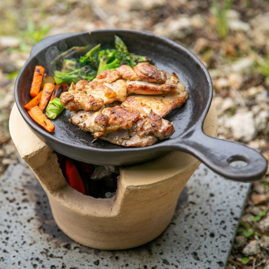 ●消火:炭や薪等使用するため、調理後残った火種は火消し壺等の火移りのない安全な場所に移して消火作業を行い、必ず火が消えたことを確認してください。消火後の炭や灰は各市区町村の処理区分に従って処分してください。