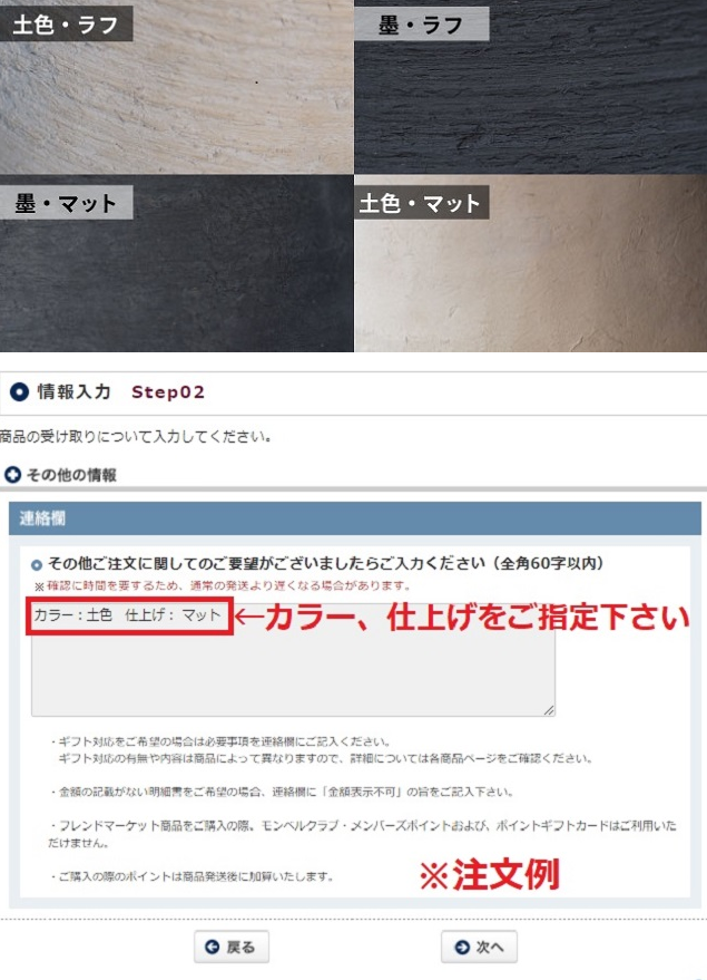 ※着日指定をご希望の場合は、お買い物途中の「連絡欄」にご希望の商品到着日をご記入ください。