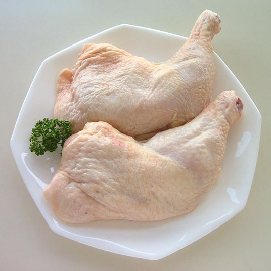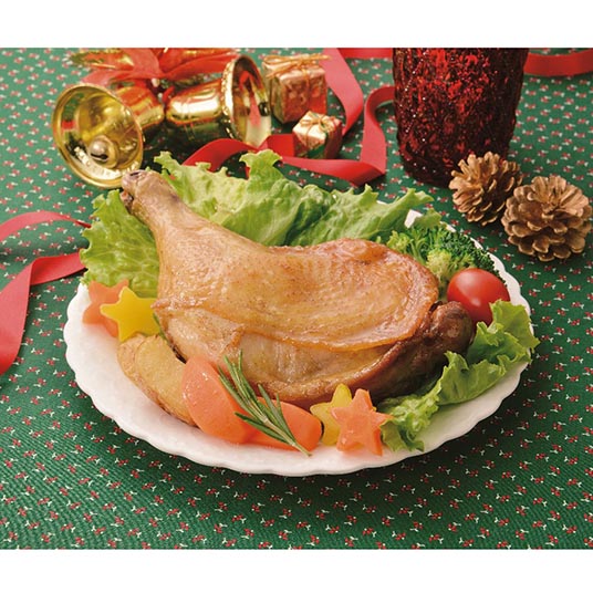 骨付きでボリュームたっぷりのもも肉です。ローストレッグや照り焼きにおすすめ。