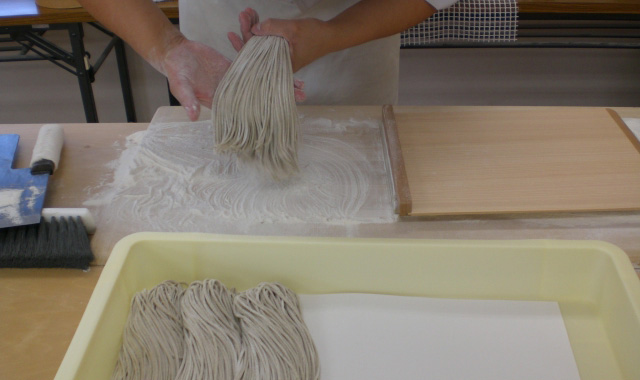 ③デザートは、蕎麦湯が冷める前に寒天又はゼラチン等の凝固剤を加え冷めた後、切り分けて黒蜜・きな粉をかけて甘味料理として食べることができます。