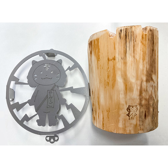 トーチ台は、市場では手に入らない加美町ご当地キャラ「かみ~ご」のオリジナルデザインで、脚部はかみ~ごの手型になっています。町内にある工場「本橋製作所東北工場」で制作加工を行っています。トーチ台だけでなく、鍋敷きにも使用できます。