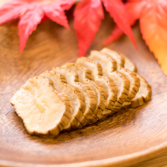 いぶりがっこは皮が硬く、身は柔らかいため切りにくいのですが、あらかじめ食感の良い最適な厚さに切っているので、手間がかからずすぐにお召し上がれます。