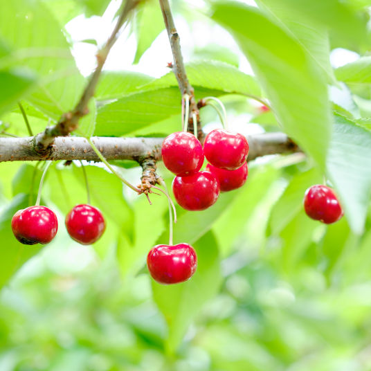 肥料を散布しない代わりに草生栽培(草をなるべく刈らない)をして、土づくりをしています。草が伸びていることで虫などの自然の生態を崩さずに栽培をすることができます。農薬の散布回数も慣行栽培より2~3回少なくし、樹を元気に保つように心がけています。春先の剪定では、さくらんぼの樹が毎年新しく根を張っていけるように若返りの剪定を施します。こどもが安心して、まるかじりできるくだものを栽培することが中川果樹園のこだわりです。