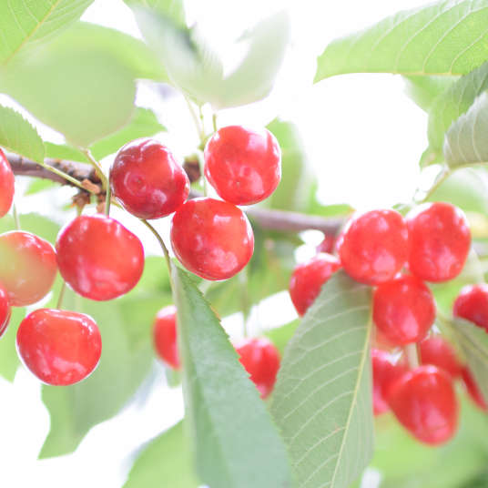 肥料を散布しない代わりに草生栽培(草をなるべく刈らない)をして、土づくりをしています。草が伸びていることで虫などの自然の生態を崩さずに栽培をすることができます。農薬の散布回数も慣行栽培より2~3回少なくし、樹を元気に保つように心がけています。春先の剪定では、さくらんぼの樹が毎年新しく根を張っていけるように若返りの剪定を施します。こどもが安心して、まるかじりできるくだものを栽培することが中川果樹園のこだわりです。