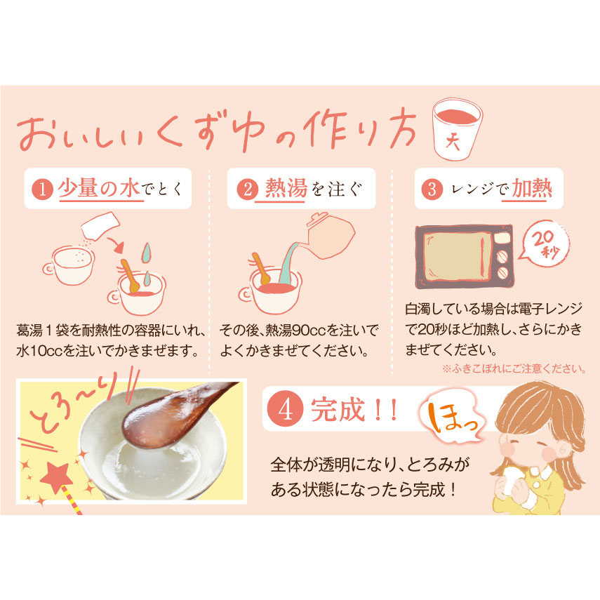吉野本葛を使用した葛湯です。プレーンは葛の風味をシンプルに味わえます。