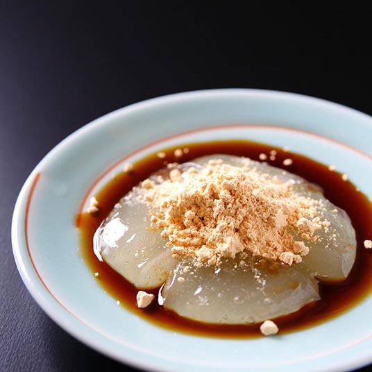 この製法は江戸後期より受け継がれた「吉野晒し」という製法で、1kgの葛根からできあがる葛粉はおよそ100gと言われます。伝統の味を頑なに守り、作り続けます。