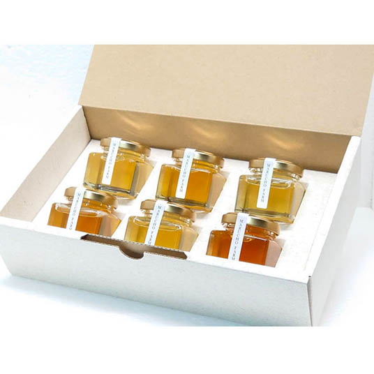 MARUCHO FARMで採蜜しているはちみつからお好みの6種類をお選びいただき、セットにしてお届けします。はちみつの味や色、栄養価の違いをお手頃価格でお楽しみいただけます。