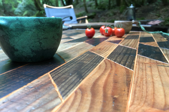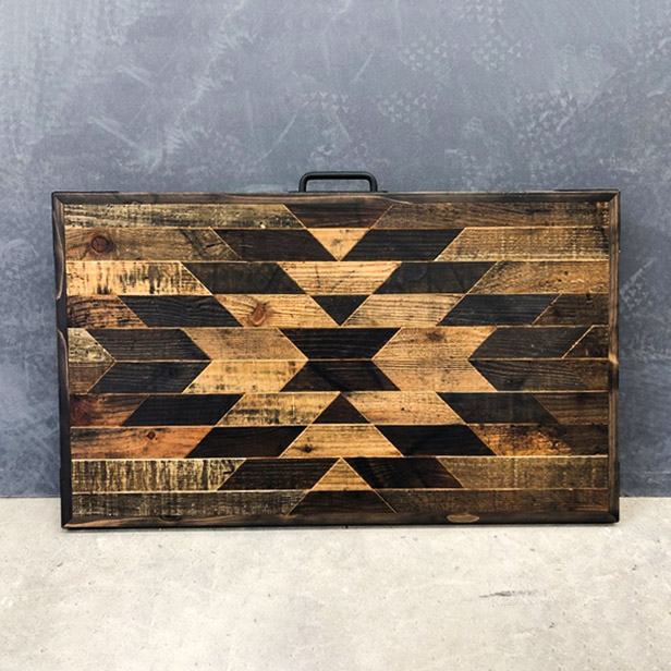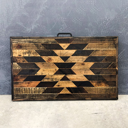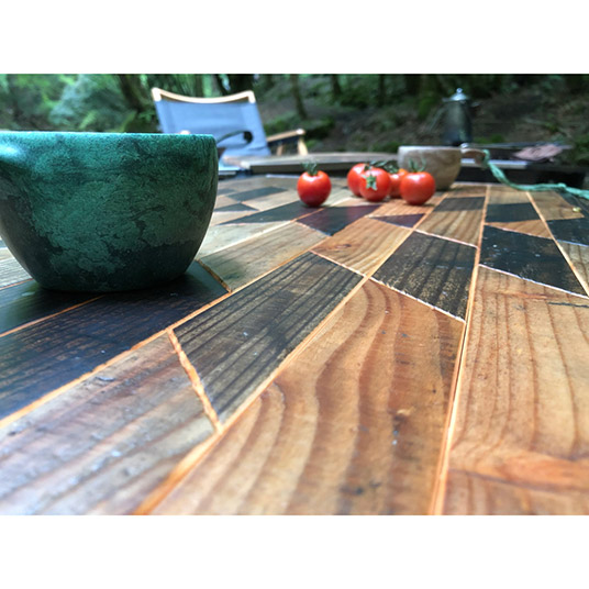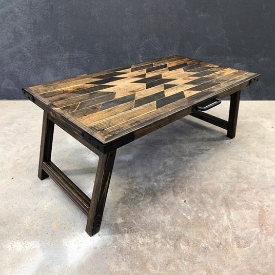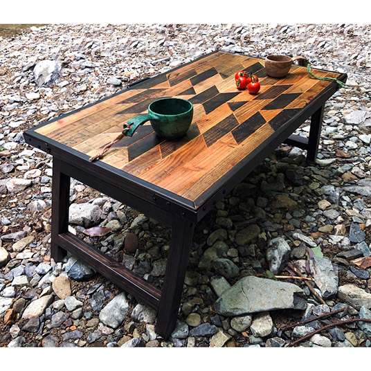 物流で使用された廃棄パレットの古材を使用して作った、折り畳み式のローテーブルです。9種類の柄から選ぶことができます。
