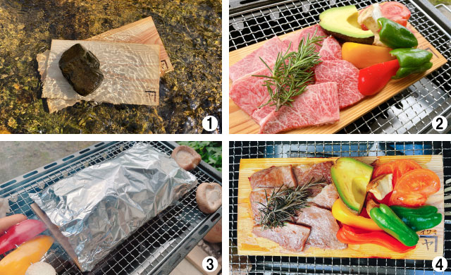 ①プレートを水に浸します。2時間以上じっくりと水分を吸わせてください。