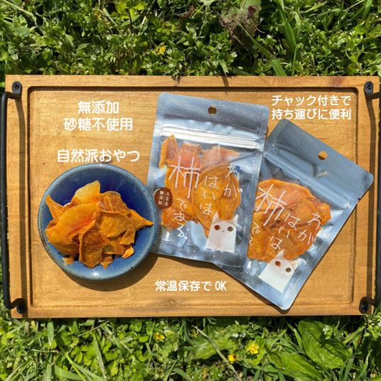 柿の専業農家が愛情込めて育てた甘柿を1枚1枚丁寧にスライスカットし、乾燥させました。自然の甘み・うまみ、栄養を凝縮させた完全無添加ドライフルーツのセットです。
