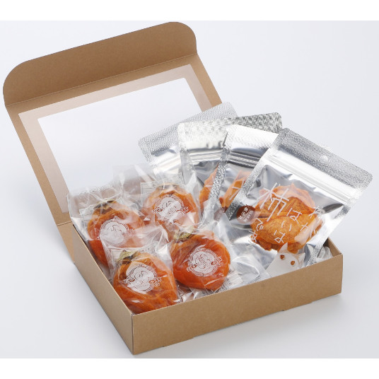ドライフルーツの美味しさは原料とする果実の味で決まります。野菜ソムリエサミット2012で渋柿部門の大賞に輝いた出雲の西条柿を原料とした、西条柿の干し柿を4個、甘柿のドライフルーツを4袋詰めたセットでギフトにおススメです。