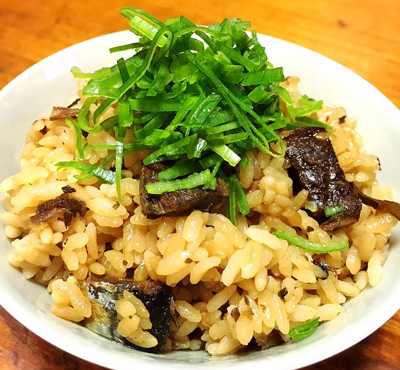 サンマを適当な大きさに切り、酒、塩を加えて白米と炊き込み、炊き上がりにゴマとネギや大葉を混ぜてください。