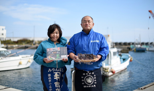カネキ商店では「常盤もの」と呼ばれ重宝される福島県いわき市の厳選した魚を使用し、「味丸黒干®」の製造を行っています。創業当初から70年以上製法を守り継ぎ足し続けるタレは、醬油・みりんを使わず、調味料は、砂糖(洗双糖)と並塩のみ。アミノ酸・保存料・着色料・酸化防止剤・ツヤ出し剤も一切不使用です。自然な色合いとツヤと深い味わいで優しい甘さが特長です。震災後、風評被害が思いのほか向い風になり、厳しい状況が続いています。福島県の水産加工品は、こだわりの商品がまだまだたくさんあります。この機会にぜひ福島の逸品をお楽しみください。