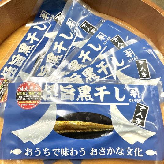 カネキ商店では「常盤もの」と呼ばれ重宝される福島県いわき市の厳選した魚を使用し、「味丸黒干®」の製造を行っています。創業当初から70年以上製法を守り継ぎ足し続けるタレは、醬油・みりんを使わず、調味料は、砂糖(洗双糖)と並塩のみ。アミノ酸・保存料・着色料・酸化防止剤・ツヤ出し剤も一切不使用です。自然な色合いとツヤと深い味わいで優しい甘さが特長です。震災後、風評被害が思いのほか向い風になり、厳しい状況が続いています。福島県の水産加工品は、こだわりの商品がまだまだたくさんあります。この機会にぜひ福島の逸品をお楽しみください。