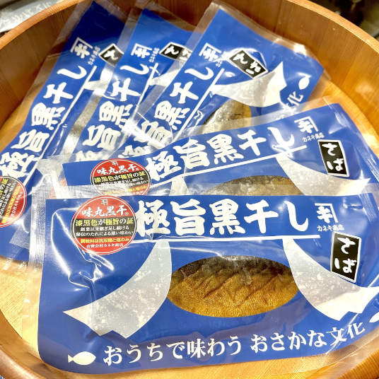 黒いからおいしい! 70年以上継ぎ足し続ける秘伝のたれ「味丸黒干®」に漬け込んだ漆黒のさば。秘伝のたれ「味丸黒干®」は、真っ黒い色ですが、醬油・みりんを使わず、調味料は、砂糖(洗双糖)と並塩のみ。アミノ酸・保存料・着色料・酸化防止剤・ツヤ出し剤も一切不使用です。自然な色合いとツヤ、優しい甘さが特徴です。秘伝のたれ「味丸黒干®」は、グルテンフリーでもあります。