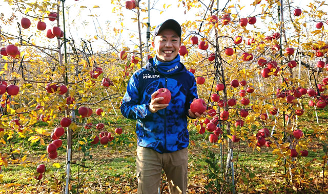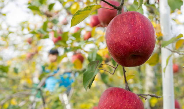 りんご園湯本は平成27年長野県うまいくだものコンクール「農林水産大臣賞」を含め、リンゴの品評会で5回の最高賞を受賞しています。雄大な自然を誇る志賀高原から寒気が吹き込む冷涼な気候、畑へと流れ込む雪解け水、リンゴの本質を引き出しおいしいリンゴを作る文化が根付いた地域で生まれた技術といった恵まれた環境とそれを生かす技術により、リンゴを生産しています。