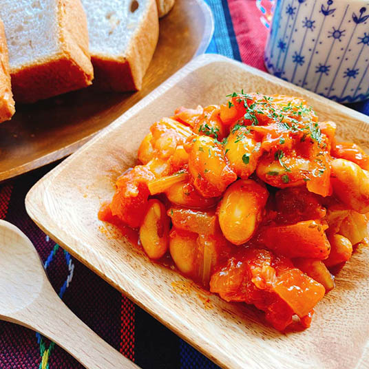 ・ポークビーンズ:大豆(身延町産)、トマト、豚肉(国産)、玉ねぎ、ニンジン、セロリ、ベーコン、オリーブオイル、ニンニク、ガラスープ(食塩、チキンエキス、砂糖、酵母エキス、ポークエキス、野菜エキス、香辛料、加工でん粉)、椎茸調味料(しいたけ抽出液、塩、還元水飴、たん白加水分解物、酵母エキス、梅酢エキス、ホタテエキス)、清酒、砂糖、塩/乳糖、醸造アルコール(一部に乳成分、大豆、鶏肉、豚肉を含む)
