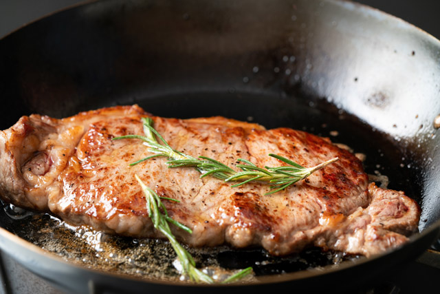 常温にもどした肉を両面焼き色がつくまでお好みで焼いてください。和牛サーロイン肉の味付けはシンプルに塩コショウがおすすめです。