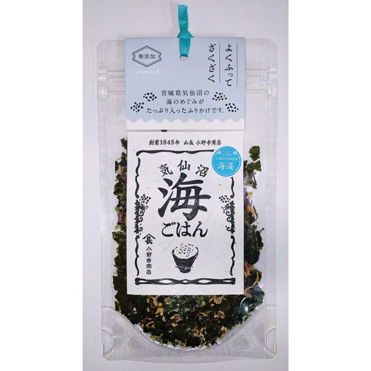 三陸の海で採れた乾物をふんだんに使用した海藻ふりかけです。温かいご飯にふりかけると、ふわっと磯の香りが立ち気仙沼の海を思い出させます。海藻は味が濃く、風味や歯ごたえがしっかりしていて、満足度の高い一品です。無添加で安心安全ですので、食にこだわりのある方、健康志向の方、小さいお子さまのいるご家庭におすすめです。ご飯に! 麺類に! スープに! トッピング感覚でご利用ください。もちろんキャンプのお供にも持ってこいです!