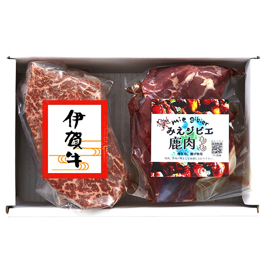 伊賀牛は伊賀地方で育った黒毛和種の未経産の雌牛に与えられる称号。香りよく肉質も柔らかく地元でも人気の牛肉です。みえジビエ鹿肉は三重県が認定した解体施設からの出荷をお約束。鹿は鉄砲でしとめたものは食用にまわさず、罠か檻で捕獲した鹿だけを使用しています。しっかりと血抜きをしたお肉は臭みもなくおいしく召し上がれます。おいしいお肉を安全・安心にお召上がり頂ける食べ比べセットです。