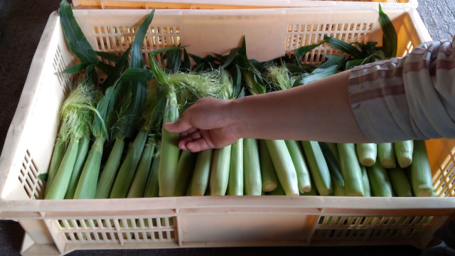 立派なスイートコーンにするため、ひとつの株にはひとつだけのスイートコーンを成らせます。しかし、十分な栄養と愛情を注がれたスイートコーンは、一株に多くて3つほど実を付けてしまうので、2番目以降はヤングコーンとして収穫します。外見の大きさは揃えて送りますが、皮を剥くまでヤングコーン自体の大きさが分からないので、お届けするものは大小ありますことをご了承ください。茹でてサラダや冷やし中華のトッピングにも最適です。グリルで丸焼きにしたり、天ぷらも絶品です。生のヤングコーンに付いているヒゲも、ヤングコーンとは違った甘みと食感を持っているので是非召し上がっていただきたいです。