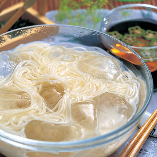 瀬戸内・小豆島で400年以上受け継がれる「手延べ製法」で造られ、長らく愛されてきた庄八の代表的そうめんです。