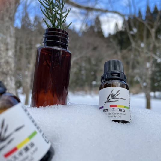 高野山ではもちろん、日本の森林で多く育てられている杉の精油は清涼感のある爽やかな香り。綺麗な水と空気の中で育った高野スギの木部の部分をじっくりと蒸留して取り出した自然の恵みがギュッと凝縮された精油です。「木」のイメージそのままの、大地に根を張る力強さ、エネルギーが感じられる香りです。