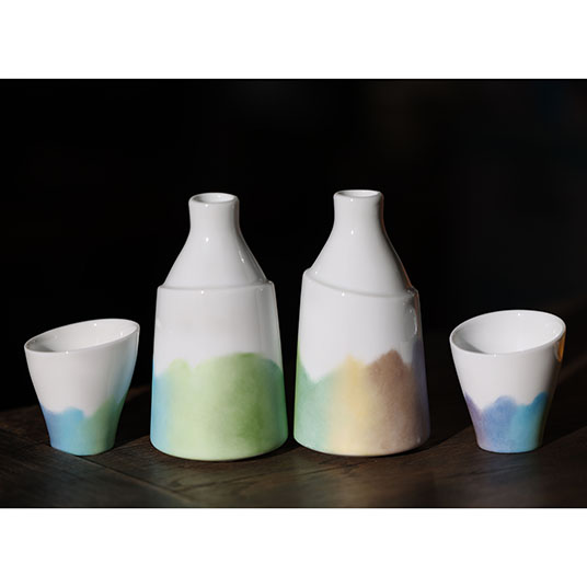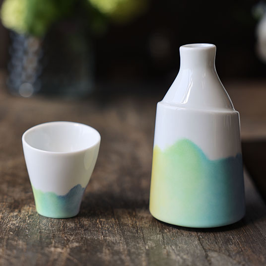 yamaniaの工房から見える稜線をグラデーションで徳利に描きました。ぐるぐる回して、どこから見ても、きれいです。晩酌しながら、山に思いを巡らせてみませんか。
