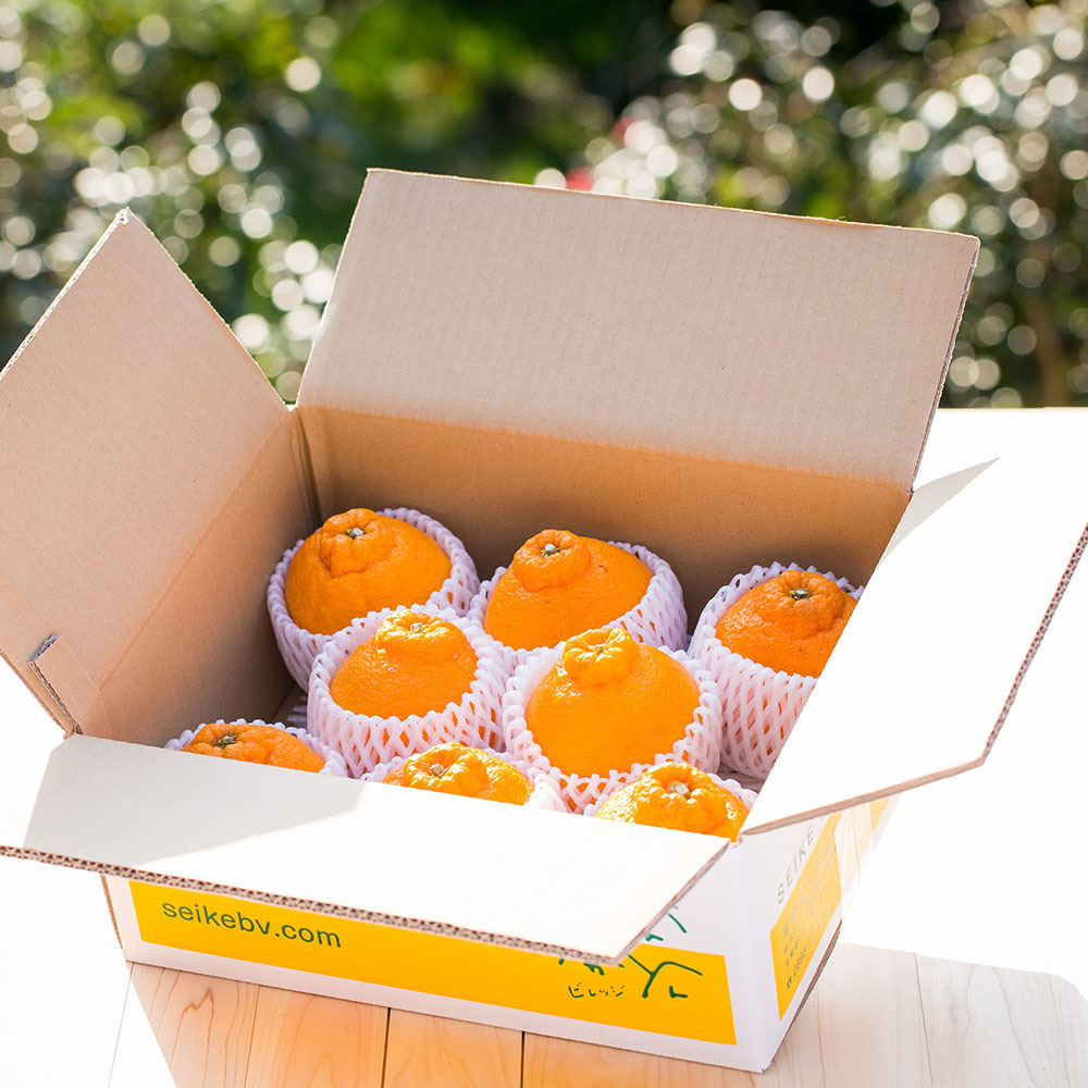 清家ばんかんビレッジは、愛媛県最南端の愛南町にあります。初代が愛南町で初めて、みかんの苗木を5本ほど植えた事が柑橘栽培の始まりになります。私は3代目になり現在の栽培面積は14haまで拡大し、柑橘栽培は創業94年になります。愛媛県愛南町は温暖な地域で、南向きのゆるい傾斜の条件の良い園地で柑橘の越冬栽培をしています。現在の栽培品種は(極早生みかん)(早生みかん・南柑20号)(はれひめ)(ポンカン)(伊予柑)(ネーブルオレンジ)(不知火)(なつみ)(土佐文旦)(甘夏柑)(河内晩柑)を栽培しています。柑橘栽培は肥料、農薬、園地の環境整備で果実の品質が決まります。農薬使用料は標準より抑えて栽培をしており、肥料は、ぼかし肥料、有機質肥料、牡蠣殻、牛ふんたい肥などを使用しています。柑橘は1月から12月まで途切れることなくお客様に届けるように生産販売をしています。