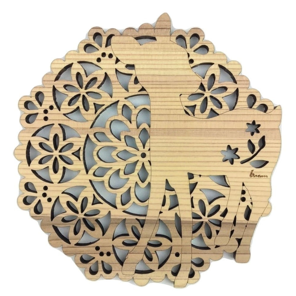 高知県産杉(集成材)の美しい柾目(まさめ)を使用したコースターです。大きめのマグカップや、カフェオレボウルに。飾りとしてプレートに立てたり、壁に飾ったり、あなたの暮らしを彩りを。コースターやオーナメントとしてお使いいただけます。