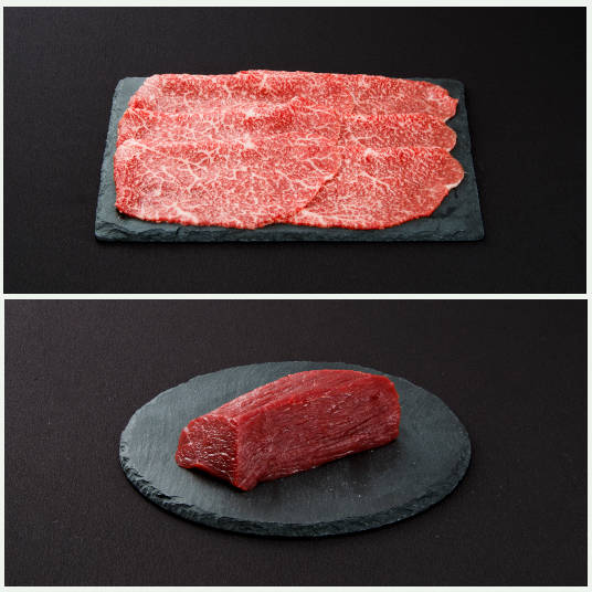 濃厚で味わい深いもも肉と柔らかく味わい深い純国産の馬刺しをセットでお届けします。
