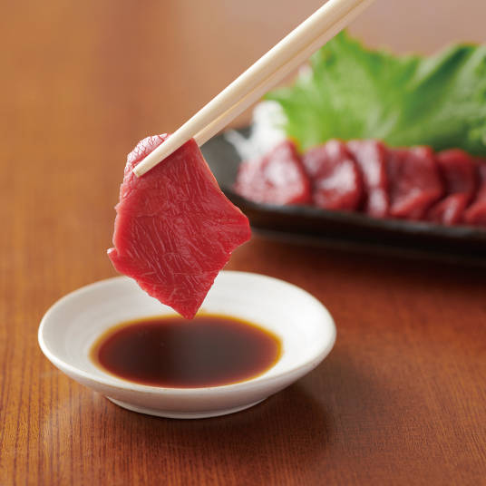 赤身の馬さし本来のおいしさをご堪能いただけます。馬さしは低脂肪・低コレステロールながら、タンパク質や鉄分、グリコーゲン、カルシウムを豊富に含む慈養食。美容・健康食として注目されています。
