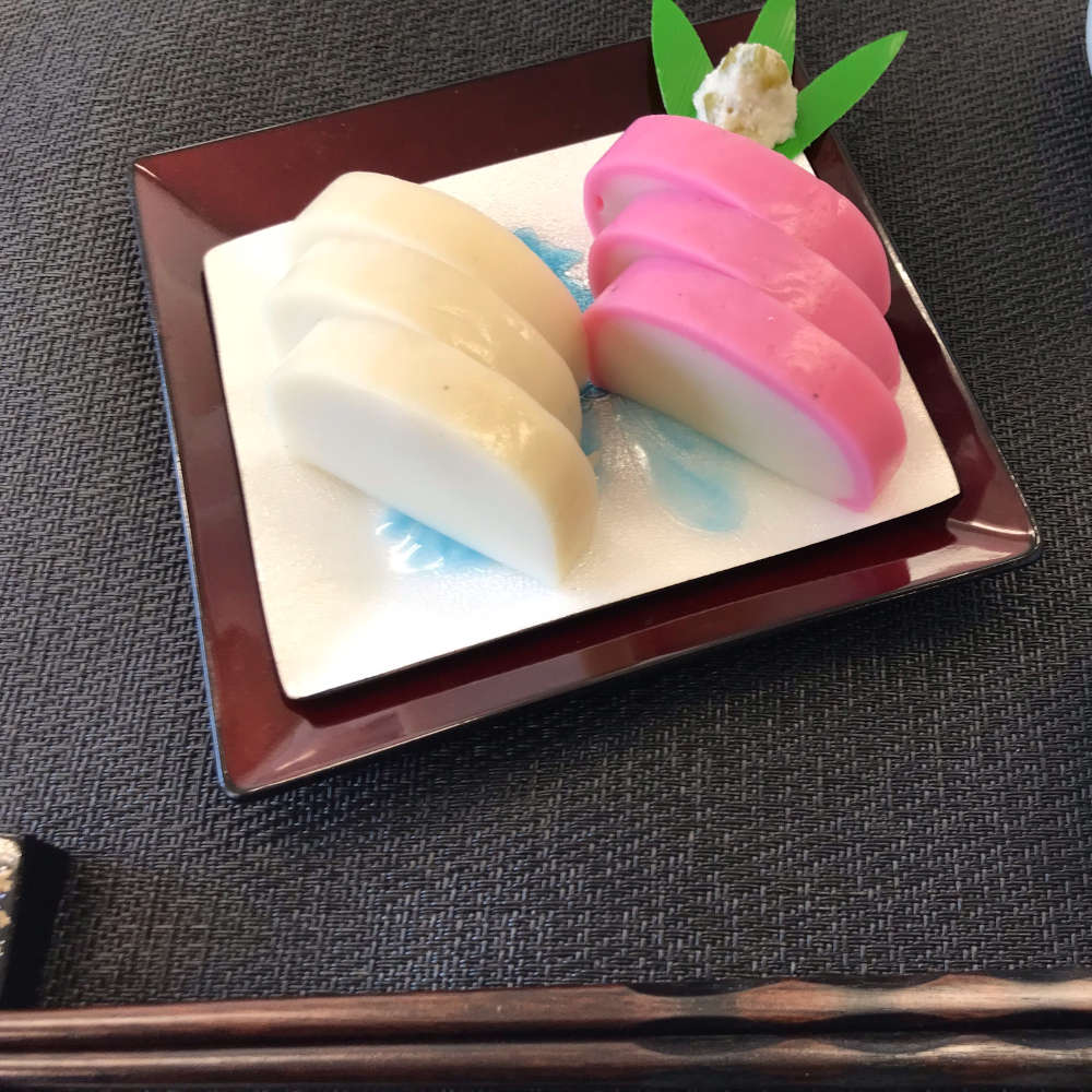 【素材】・上板かまぼこ(紅):魚肉(チリ、タイ、その他)、砂糖、食塩、みりん、魚介エキス/調味料アミノ酸等、V.B₁、着色料(コチニール)