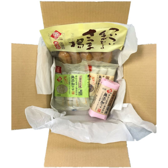 【内容量】こだわりかまぼこ(紅) 110g/こだわりちくわ 3本入/こだわり笹舟 4枚入/ついつい手が出るさつま揚げ プレーン 5枚入
