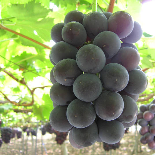 太陽の光をいっぱいに受ける南向きの傾斜地の園地は日中と夜の寒暖差もあり、それがおいしいぶどうに成長させてくれます。食べ方としてはさっと水洗いして頂いたあとに、そのまま皮ごと召し上がれる品種もありますが、気になる場合は皮をむいてお召し上がりいただくか、果肉を吸うようにして皮から押し出してお召し上がりください。種なしなので手軽に食べられます。 食べきれない場合はジュースやジャムにしてもおいしく、また皮ごと冷凍も可能です。 冷凍したものはミキサーなどでシャーベットやスムージーにしてお召し上がりいただくと生食とはひと味違った楽しみ方ができます。