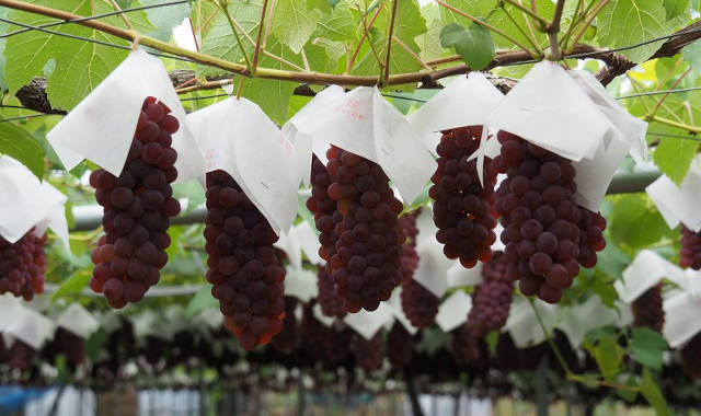 ぶどうづくりの主な作業としては、①雪解けから始まる雨よけのビニール張り ②房を間引く手作業 ③生育促進と種無しぶどうにするためのジベレリン作業 ④形の良い房にするための房づくり作業 ⑤粒づきをちょうどよく仕上げるための粒抜き作業 ⑥じゅうぶん色付きしたらようやく収穫となります。作業のほとんどが、一房単位・一粒単位で行われる作業で、その他にも園地の管理など細かな作業があり、毎年の無事の実りのために丁寧に頑張っております。栽培農家直送のぶどうですので鮮度・品質ともに自信をもってお届けいたします。