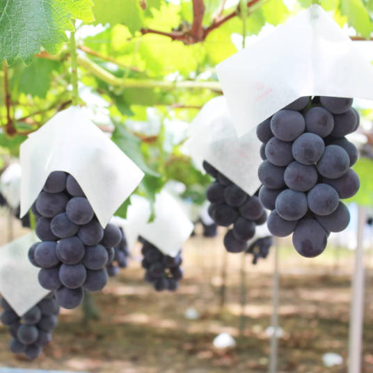 ぶどうづくりの主な作業としては、①雪解けから始まる雨よけのビニール張り ②房を間引く手作業 ③生育促進と種無しぶどうにするためのジベレリン作業 ④形の良い房にするための房づくり作業 ⑤粒づきをちょうどよく仕上げるための粒抜き作業 ⑥じゅうぶん色付きしたらようやく収穫となります。作業のほとんどが、一房単位・一粒単位で行われる作業で、その他にも園地の管理など細かな作業があり、毎年の無事の実りのために丁寧に頑張っております。栽培農家直送のぶどうですので鮮度・品質ともに自信をもってお届けいたします。