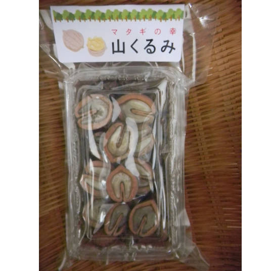 天然の鬼くるみの実は殻がかたくて、実を取り出すのに苦労するので、使いやすいように半割りにしました。鬼くるみは味が濃くてコクがあるので、おつまみや、実を取り出しすりつぶしてて和え物にしたり、みそに練りこんで食べるのがおすすめです。