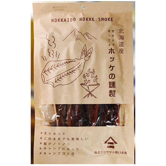 北海道産の脂がのった真ほっけを使用し、創業以来変わらぬ甘塩っぱい味付けで伝統の燻煙製法で北海道産ナラ材で燻煙しています。噛むほどに旨味が増すほっけの本燻です。そのまま皮をむいてお召し上がりください。また、キャンプなどのアウトドアの際に軽く火で炙って召し上がっても美味しくいただけます。