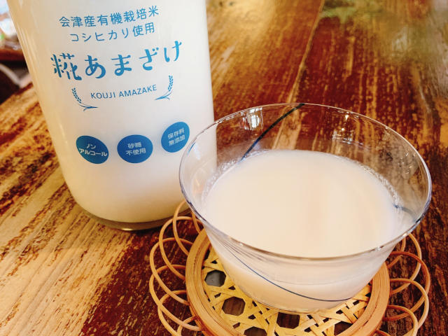 おいしいのはもちろん、安全性が高く健康にも良い米作りを目指し、栽培期間中、農薬や化学肥料を一切使用しない有機栽培米造りに15年以上取り組んでいる会津の米農家が作った有機栽培米コシヒカリを使用しています。米の粒々感が少なく、サラッとして飲みやすいストレートタイプのあまざけです。飲む前によく振って頂き、夏はキンキンに冷やした「冷やしあまざけ」、冬は温めて「ホットあまざけ」にしてお飲みいただく他、旬の果物と一緒にミキサーにかければ、フルーツあまざけシェイクもお楽しみ頂けます。