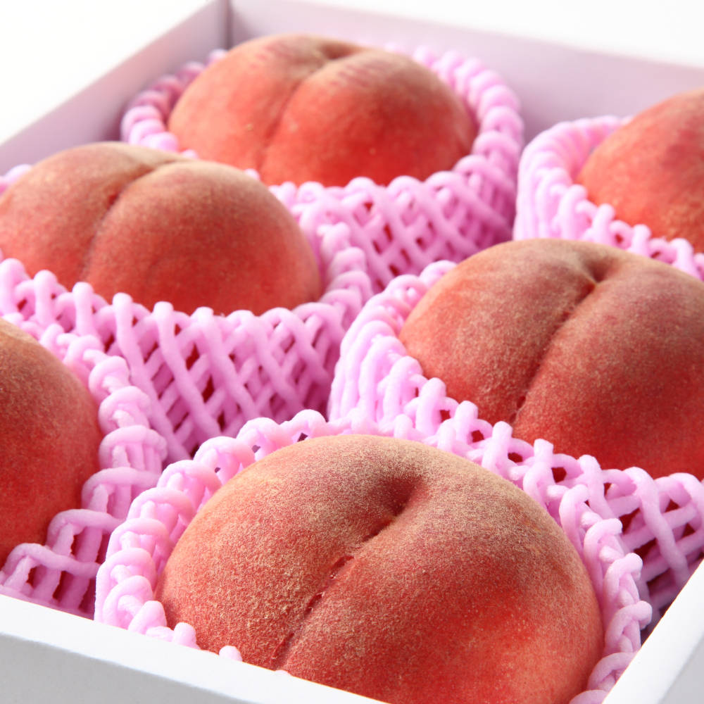 当園の生産する桃は糖度の高さと芳醇な香りが特長です。おいしさの秘訣は、実が一番甘い最高の状態になる樹上完熟で収穫する事です。天気や人の都合に合わせるのではなく桃の生育を理解したうえで熟すのが早い枝先から何日もかけ少しずつ収穫することです。肉質もしっかりしていて果汁が多くジューシー。強い甘みと種まわりのほどよい酸味、さわやかな香りがたまらない誰もが知ってる大人気の白桃です。化学肥料を一切使用せず有機肥料のみを使用し栽培しています。品種はおまかせです。