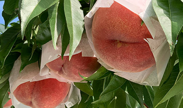 木に実らせる数が多すぎると収穫量は増えますが小玉で色付きの良くない桃になります。生育を見ながら3回ものふるいにかけ、木に生らせる実を厳選しています。