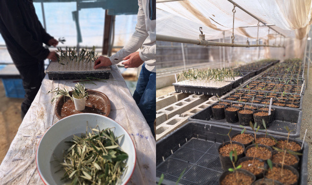 小豆島ヘルシーランド「オリーヴの森」農園チームがわが子のように育てた小豆島産のオリーヴの苗木です。