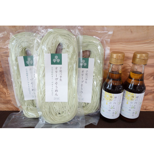 【内容量】半生オリーヴそうめん:180g 瀬戸内レモン香る贅沢だしつゆ150ml