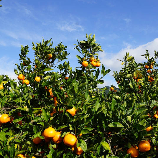 どの坂果樹園は太陽の光が多く当たる南向きの段々畑で栽培しています。また、紀伊水道に流れ込む黒潮の関係で1年を通して温度変化が少なく、温暖な気候に恵まれています。梅雨時期は降雨量が多いものの、晴天日数も200日を超え日照時間が長く、土壌も水はけがよく、水管理を丁寧に行う柑橘類栽培にとても適しています。さらに柑橘類に適した土壌に改良を加え、最適な水管理を行い、糖度、食味の良い柑橘類を作っています。